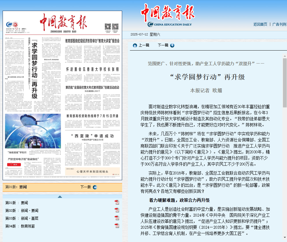 (2025-7-12)中国教育报:“求学圆梦行动“再升级